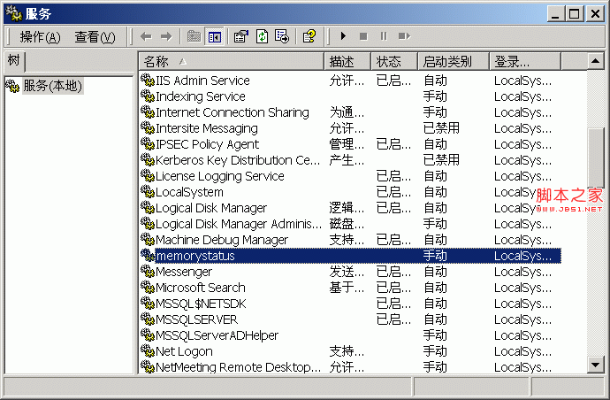 从服务控制面板启动 MemoryStatus 服务。如果初始化不出错,表示启动成功。过一会儿将服务停止。检查一下 C:/MyServices 文件夹中 memstatus.txt 文件的服务输出。在我的机器上输出是这样的: