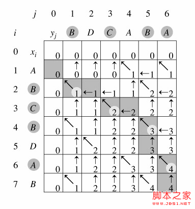 引进一个二维数组c[][],用c[i][j]记录X[i]与Y[j] 的LCS 的长度,b[i][j]记录c[i][j]是通过哪一个子问题的值求得的,以决定输出最长公共字串时搜索的方向。