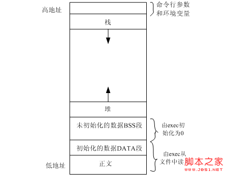 栈是向下生长,对向上生长。这里描述的是逻辑地址。