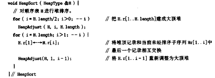 void HeapSort(HeapType &H) //对顺序表H进行堆排序