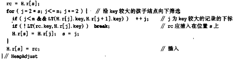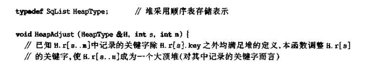 void HeapAdjust(HeapType &H,int s,int m) //已知H.r[s...m]中记录的关键字出H.r[s].key之外均满足堆的定义,本函数调整H.r[s]的关键字,使H.r[s...m]成为一个大顶堆(对其中记录的关键字而言)