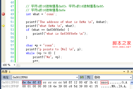 // 字符c的16进制值是0x63,字符o的16进制值是0x6f,