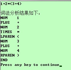 词法分析的要求是:接受一个表达式,输出该表达式中的各类单词符号