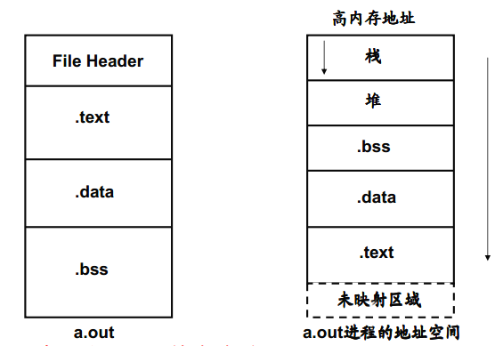 从a.out把程序映射到对应的内存地址空间是操作系统完成的,也就是在操作系统创建进程的时候完成的,在描述进程的那个结构体中。