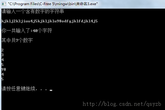 题目:输入一个字符串,内含所有数字和非数字字符。将其中连续的数字作为一个整数,依次存放到一个数组中,统计共有多少个整数,并输出这些数。
