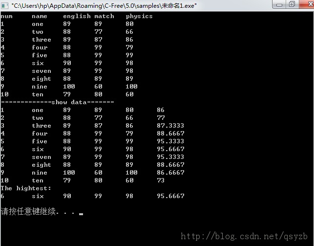 shuchu(s[k]);//输出最高分数据