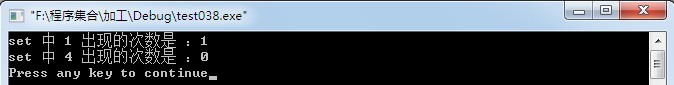 cout<<"set 中 1 出现的次数是 :"<<s.count(1)<<endl;