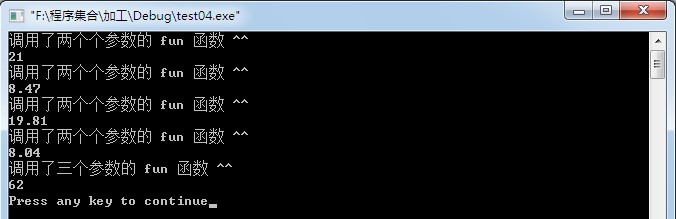 cout<<"调用了两个个参数的 fun 函数 ^^ "<<endl;