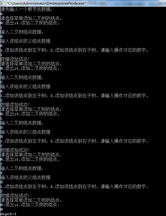 cout<<"0.退出;1.添加二叉树的结点。"<<endl;