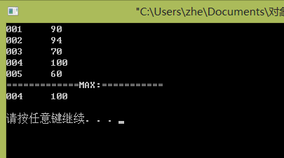 要求:建立一个对象数组,内放5个学生的数据(学号,成绩),设立一个函数max,在max函数中找出5个学生中成绩最高者,并出输出结果。