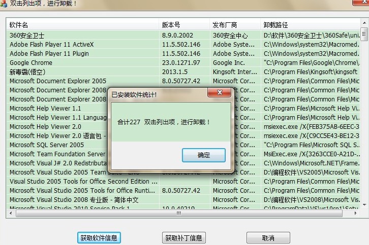 // 获取所有已安装常用软件卸载程序所在路径