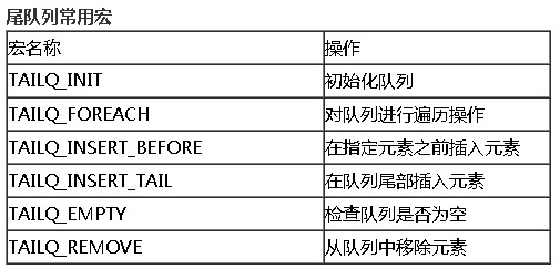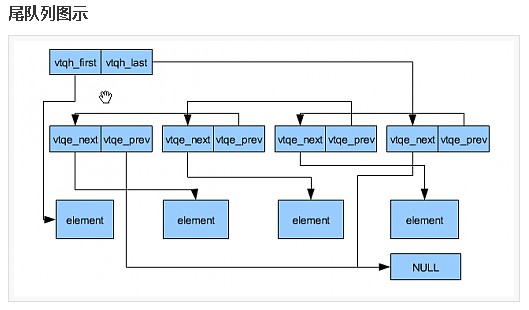 它必须包含一个TAILQ_ENTRY来指向上一个和下一个元素