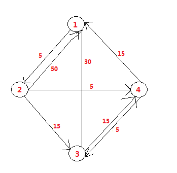 但是这里我们要注意循环的嵌套顺序,如果把检查所有节点X放在最内层,那么结果将是不正确的,为什么呢?因为这样便过早的把i到j的最短路径确定下来了,而当后面存在更短的路径时,已经不再会更新了。