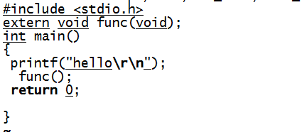 vi a.c //编辑a.c , 它将被hello.c调用,前提是这两个文件必须在同一目录下