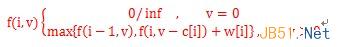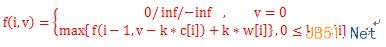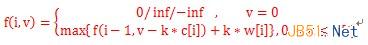 f[v]=max{f[v],f[v-c[i]]+w[i]};