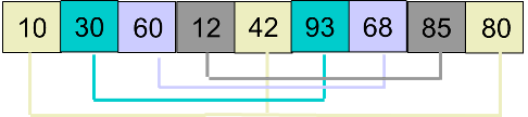 int a[] = {80, 93, 60, 12, 42, 30, 68, 85, 10};