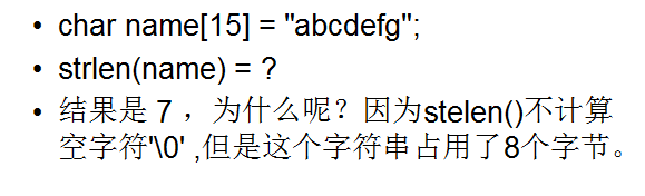 2.strlen()只计算可见的字符,而不把空字符计算在内。