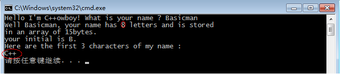 cout << "your initial is " << name_cin[0] << "." << endl;