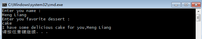 cin把Meng作为第一个字符串,并放到数组中,把Liang放到输入队列中第二次输入时,发现输入队列Liang,因为cin读取Liang,并将它放到dessert数组中