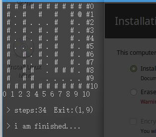 printf("\n\n > steps:%d Exit:(%d,%d)\n",steps,endx,endy);
