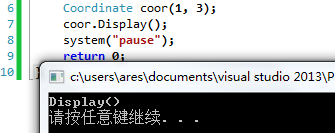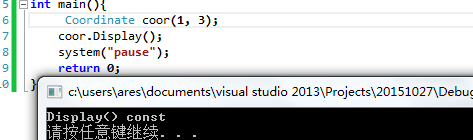 在Coordinate类中,有一个Display()成员函数和一个Display() const常成员函数,代码如下