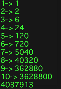 int m=factorial(i);