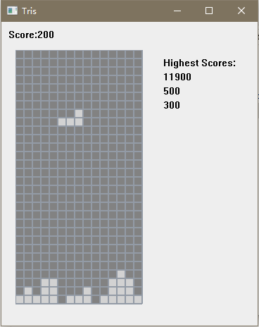每次下落或左右移动,先对row和column做出改变,然后检测当前row和column下,shape是否重合了为1的格子,如果有重合,就说明shape出界了或者到达下落最低点,则要恢复row和column值。另外,如果是下落,还要将shape放在board上,并产生新的shape。