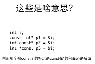 3)、指向常量的常指针(指针变量指向一个固定的对象,该对象的值不能改变)。