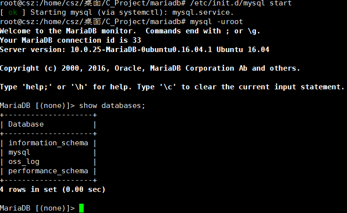 到这里基本C 调用 MariaDB 基本流程跑通了. 但是很不爽. 只能通过root用户使用.