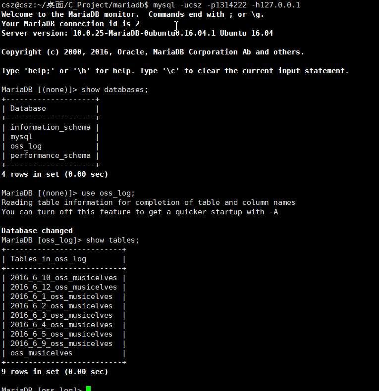 mysql -ucsz -p1314222 -h127.0.0.1