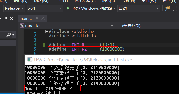 主要采用 Release X64 编译. 为了检验上面结果是可以接受的, 将 _INT_R 改成1024 重新编译一次.