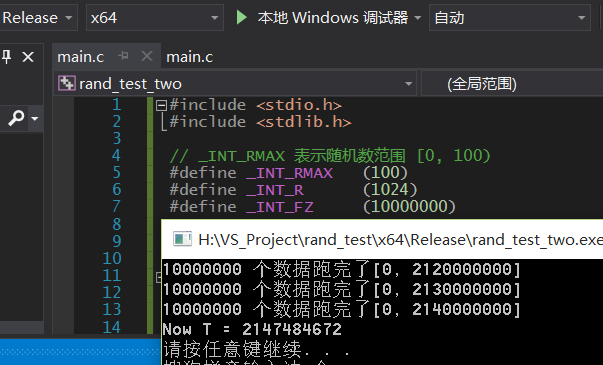 在linux上试试 测试代码基本一样 rand2.c 如下