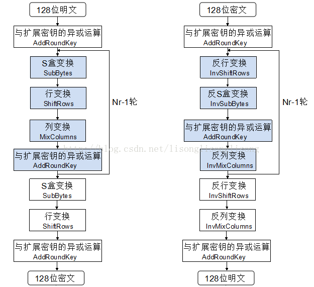 下图是 AES 加密解密的整体流程图: