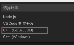 点击设置图标,在弹出的选择环境中选择C++(GDB/LLDB),会自动创建一个launch.json文件