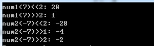 cout<<"num2(-7)>>2: "<<(num2>>2)<<endl;