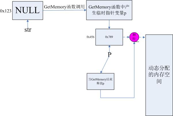 其实我们深入分析下不难发现,当我们传入str到GetMemeory()函数中的时候,该函数我们创建了一个临时