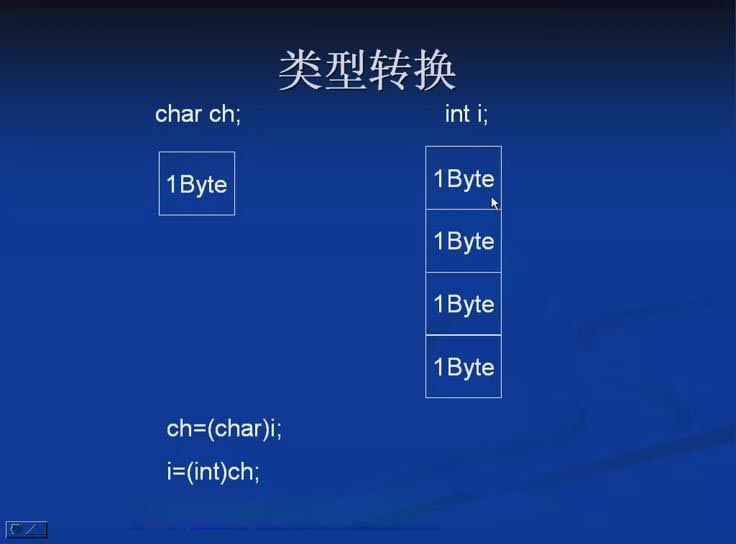 整型int转换为char类型时,只有一个字节的内容能够放进char类型,剩下的三个字节内容放不下,被截掉,丢失精度。 两个变量或者对象进行转换时,一定要看两者的内存模型是否互相匹配。