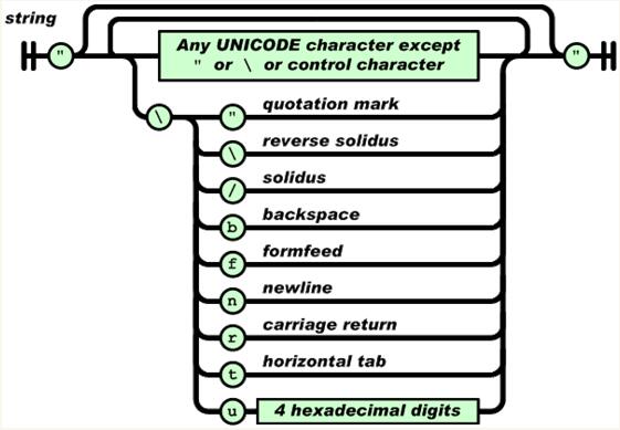 2、String:字符串,是以双引号封闭起来的一串字符,使用反斜杠来转义,如:\\、\n等,JSON中字符串的概念与C/C++或者JAVA语言里的字符串概念差不多,如:”abc”。其结构如图三:
