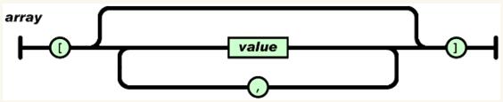 4、Array:数组,JSON的数组是一个以中括号封闭起来的value的集合,即数组内的各个成员的数据类型可以不一样,这一点就跟C/JAVA的数组概念不同了。每个value之间是由一个“,”(逗号)隔开,例如:[123, abc, false, {name:mj}];其结构如图五: