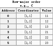 根据行优先的原则,其排序方式为