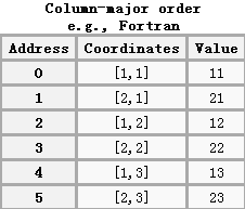 首先了解“行优先”和“列优先”的知识,这两种方式在数学上的直观描述如下,给定如下矩阵:
