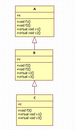 <一> 上述类图的解释:B的v2覆盖了A的v2,C的v1覆盖了A的v1,C的v3覆盖了B的v3.