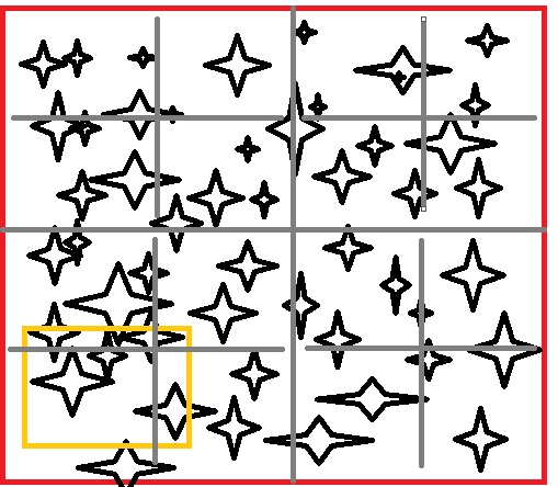 当需要对某一范围的单位筛选时,只需要定位到与范围相交的树区域,再对其区域内的对象筛选即可。