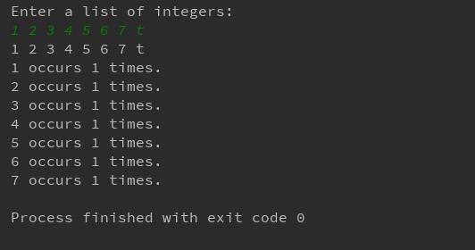1到6的输出如(2)中所述,等我们再次输入文件结束符号时,cin流状态为false,结束while循环,因此执行while循环之外的代码,打印出最后一个数据7 的统计次数。