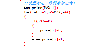 实现将偶数标记为0,素数标记为1;(也可以用一个bool数组将偶数标记为false,奇数标记为true)