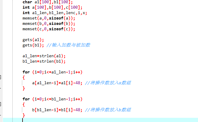 b[b1_len-i]=b1[i]-48; //将操作数放入b数组