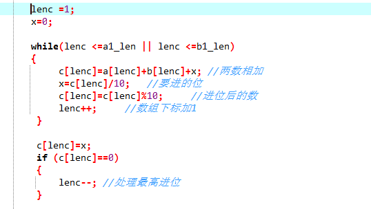 c[lenc]=a[lenc]+b[lenc]+x; //两数相加