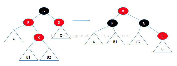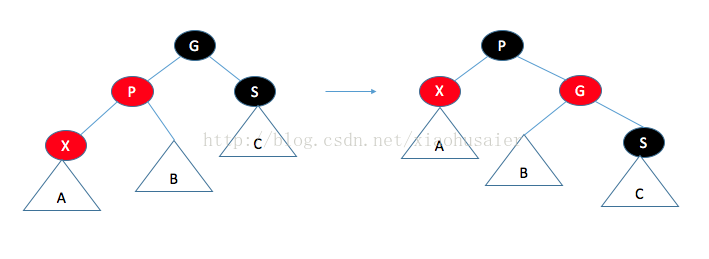 /* 如果X是黑的,则Sibling是红的,旋转 */
