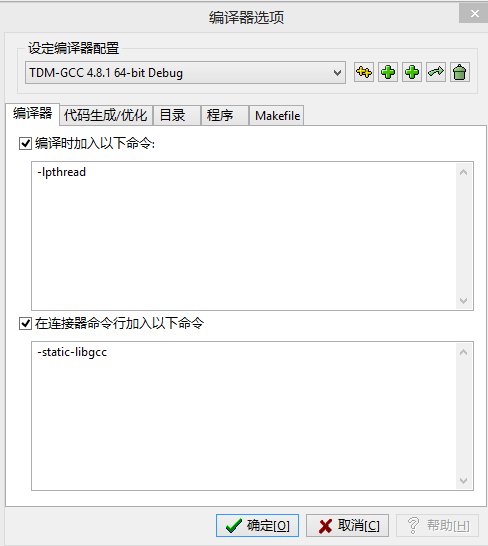 四、如果出现“undefined reference to 'pthread_create”的错误,在编译器选项中要加 -lpthread参数
