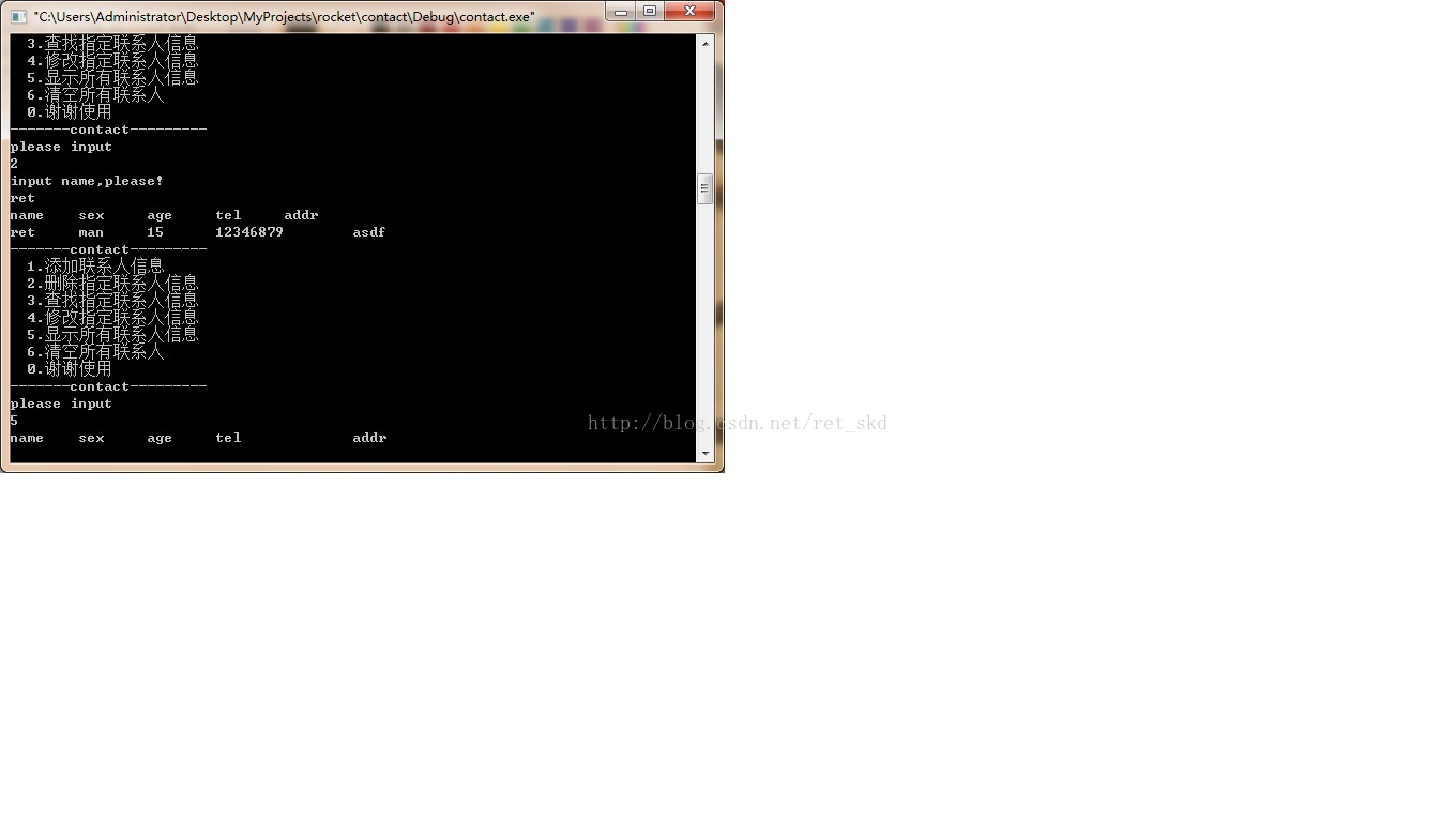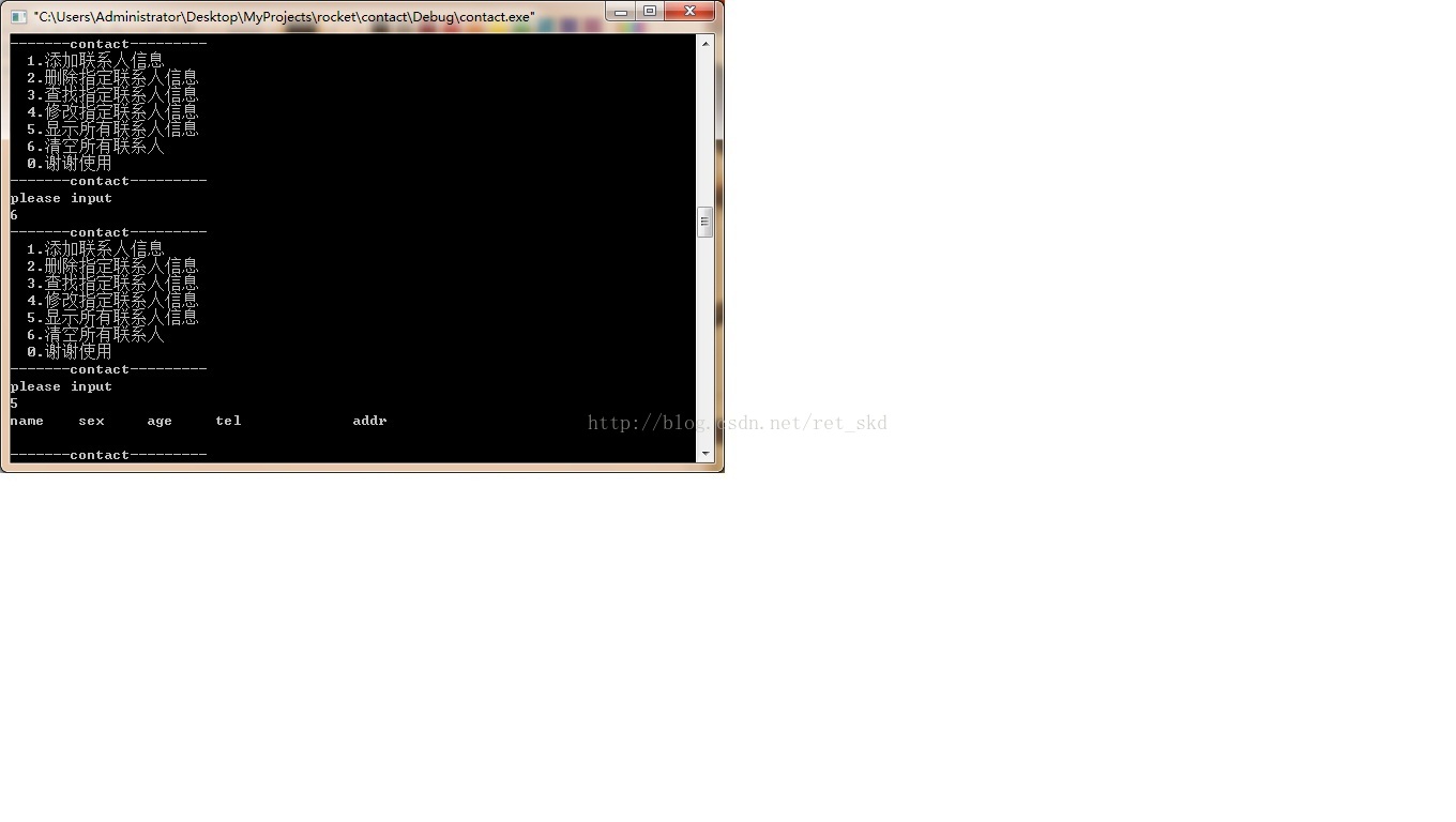 printf("name\tsex\tage\ttel\t\taddr\t\n"); //制表符来制作表头